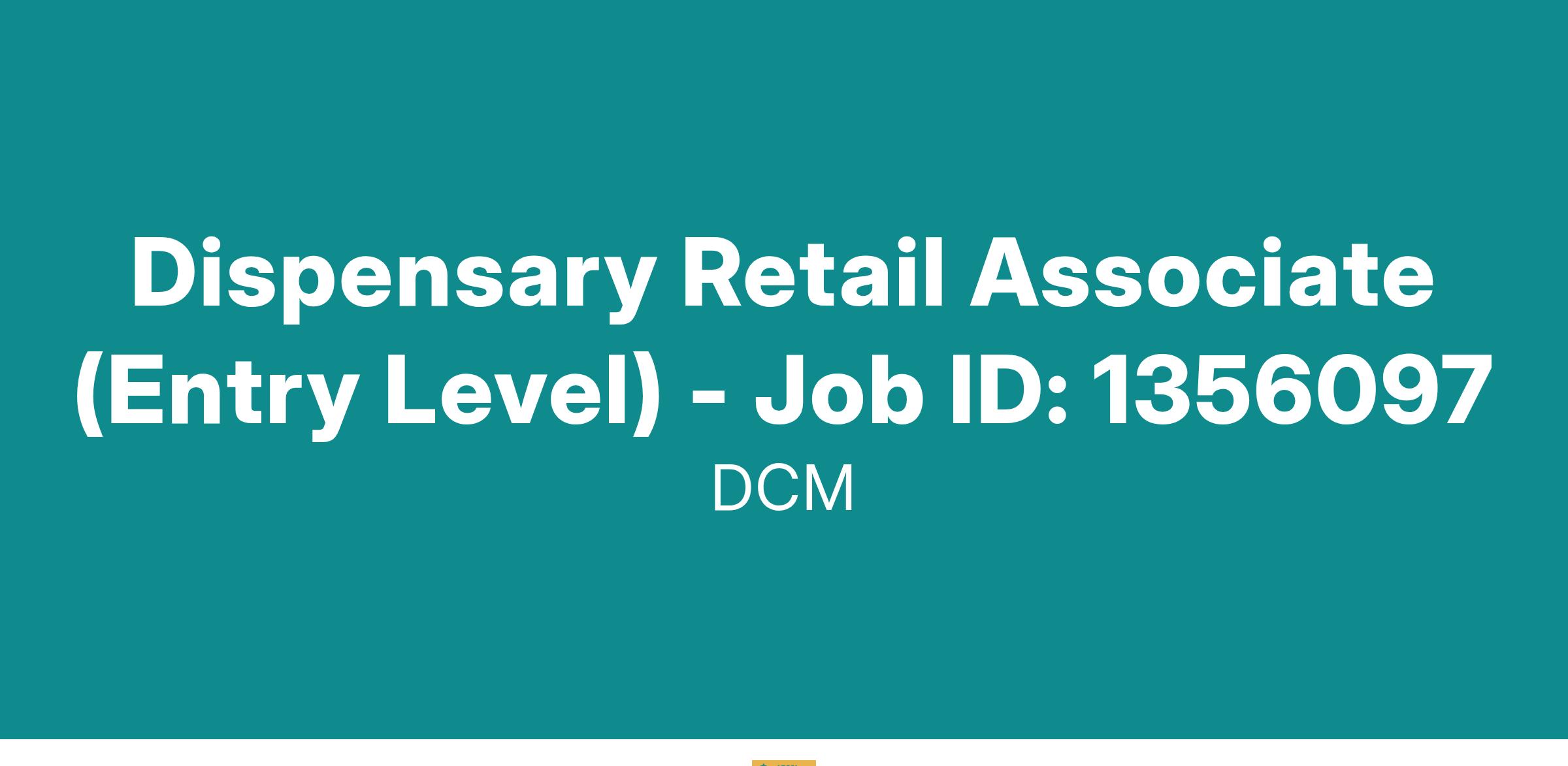 Dispensary Retail Associate (Entry Level) - Job ID: 1356097