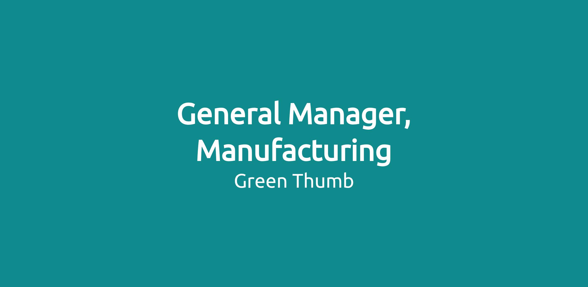 General Manager, Manufacturing