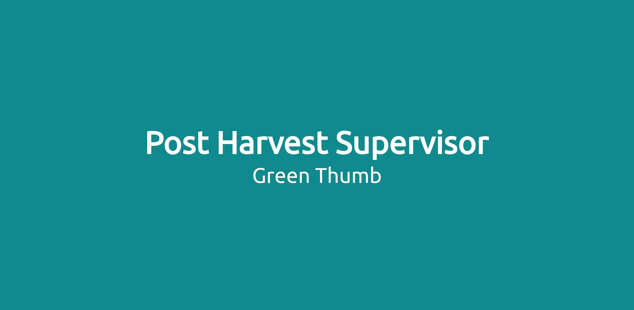 Post-Harvest Supervisor provides post-harvest process management and supervises the activities and operations of the post-harvest team from Harvest until Packaging while abiding by laws, rules, policies, procedures, and operational guidelines at our Cultivation & Production Facility located in Ocala, Florida.