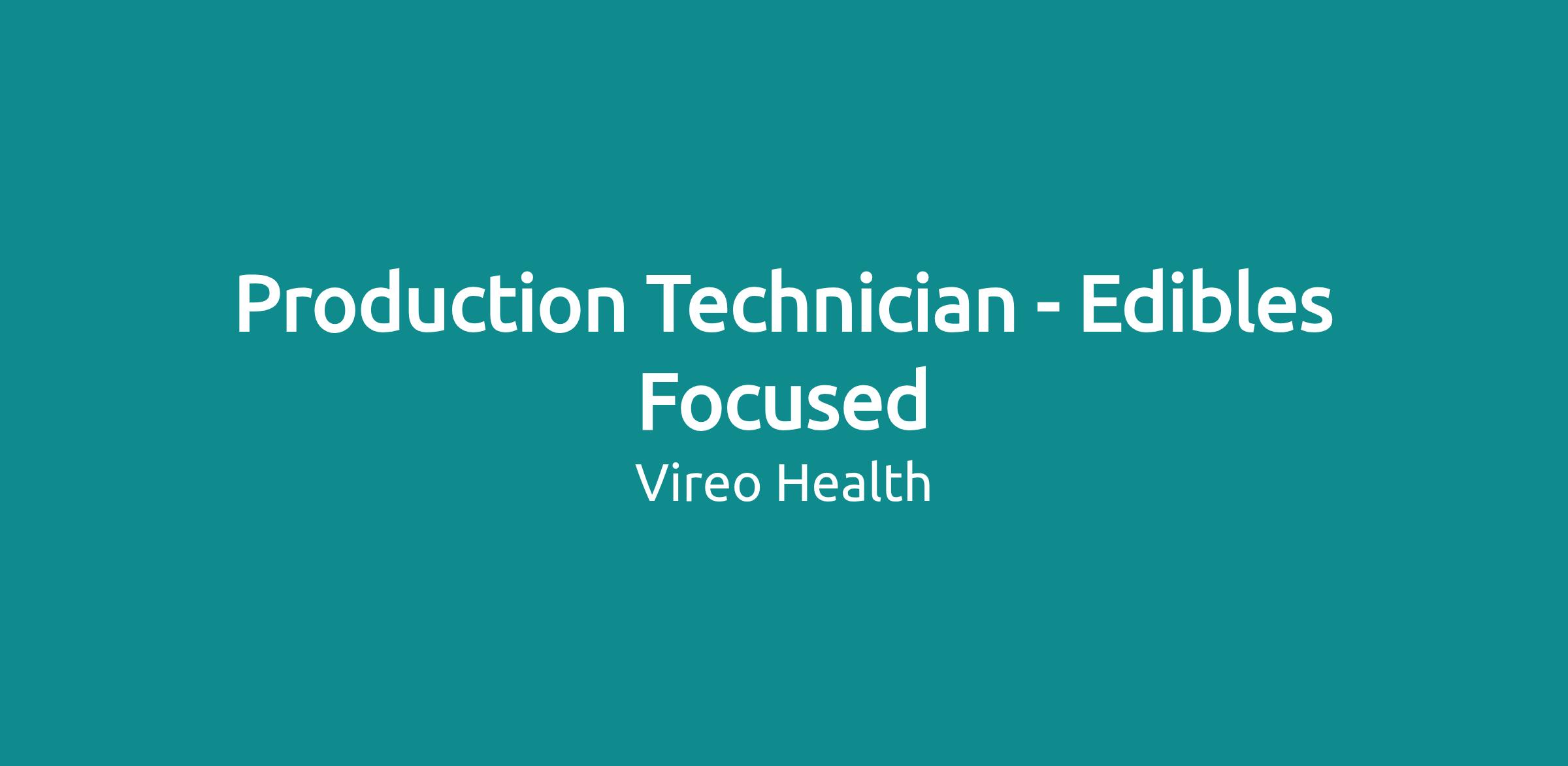 We are seeking a Production Technician – Edibles Focused to assist manufacturing team in the production of cannabis-based medicines. This includes packaging, inventory management duties and labeling.